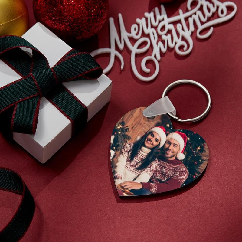 Custom Photo Keyring Heart Shape-Merry Christmas