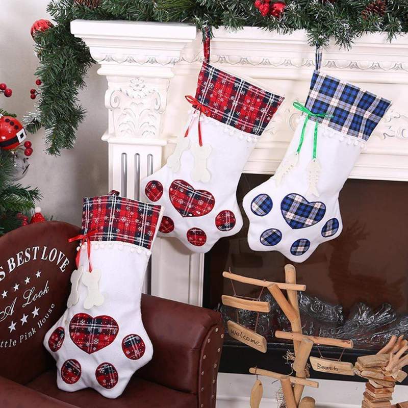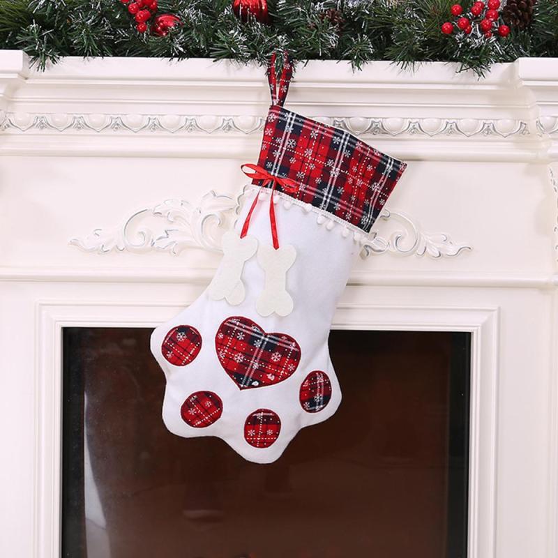 Christmas Gifts Decorations Socks Gift Bag Dog paw Socks Plaid Fabric