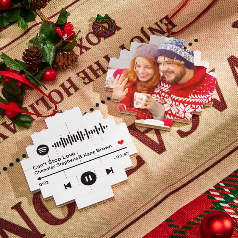 Christmas Ornament Custom Spotify Code Round Photo Block Personalized Building Brick