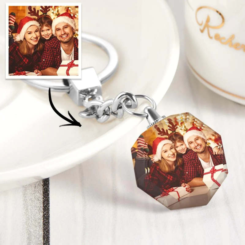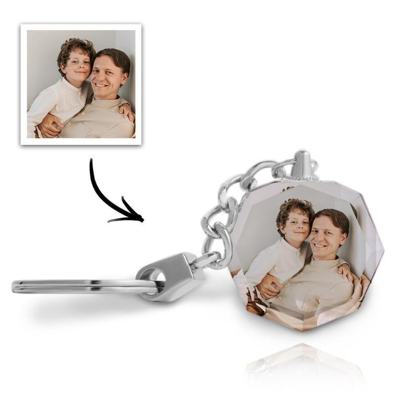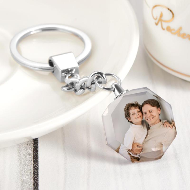 Anniversary Gift Custom Photo Keychain Crystal Round