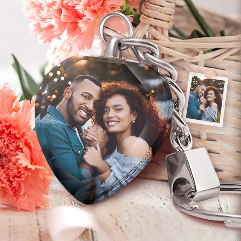 Custom Photo Keychain Crystal Heart Custom Keychains Gifts - Couple