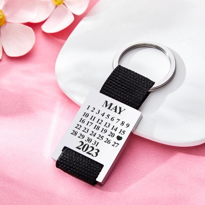 Custom Calendar Keychain with Spotify Code Personalized Gift