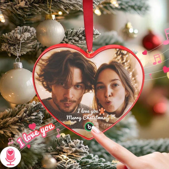 Custom Christmas Fridge Magnet with Heart-Shaped Custom Photo Custom Text Christmas Gift