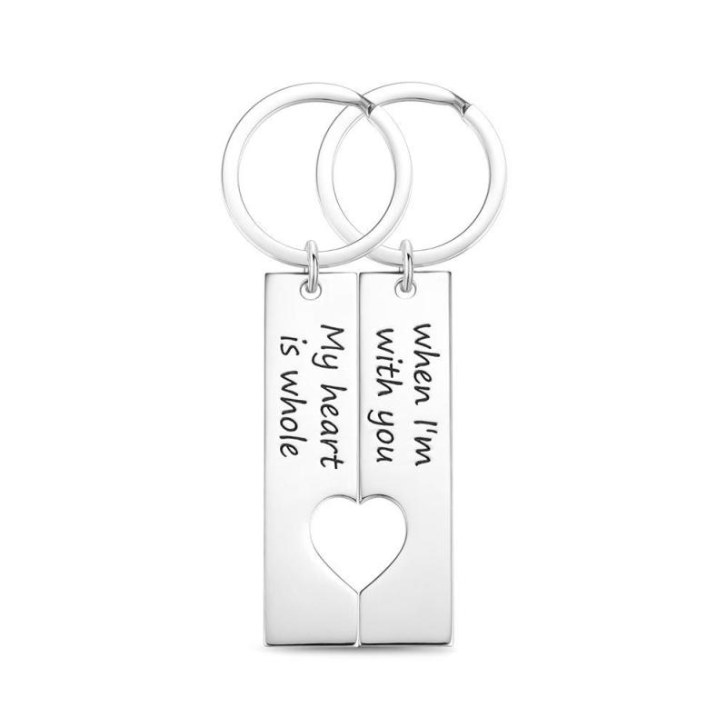 Custom Engraved Couple Vertical Bar Keyring Set