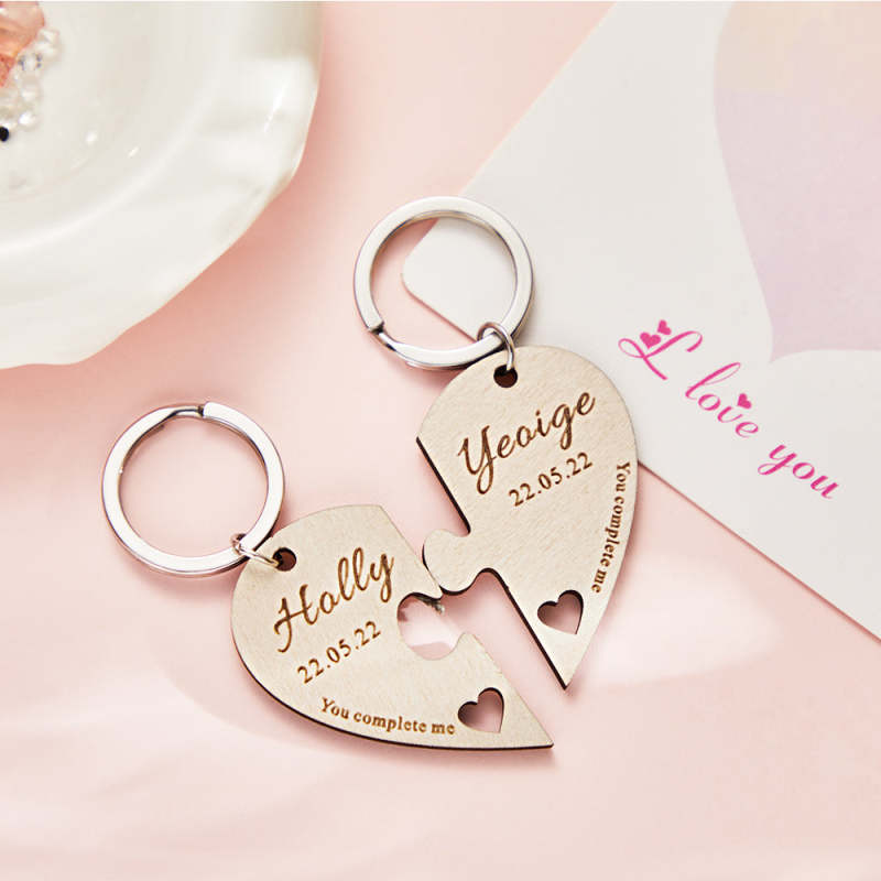 Custom Engraved Keychain Personalized Heart-shaped Wooden Jigsaw Keyring Romantic Gift