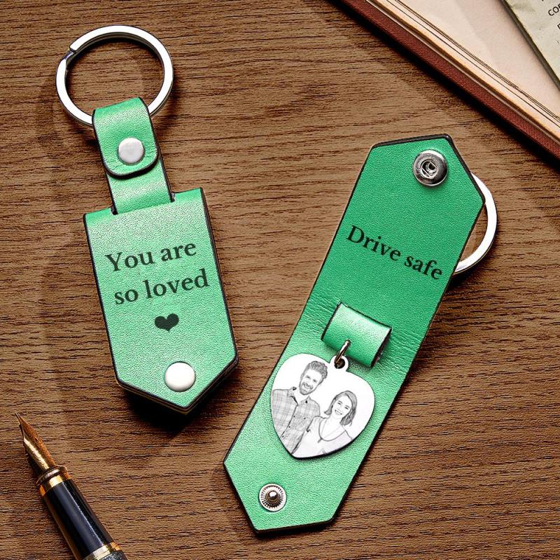 Custom Heart Shaped Photo Leather Keychain With Text Annivesary Gifts For Men