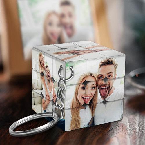 Custom Multiphoto Rubic’s Cube Keychain Couples