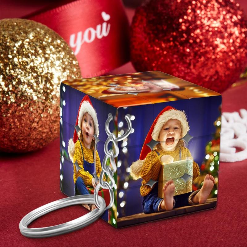 Custom Multiphoto Rubic’s Cube Keychain Couples-Merry Christmas