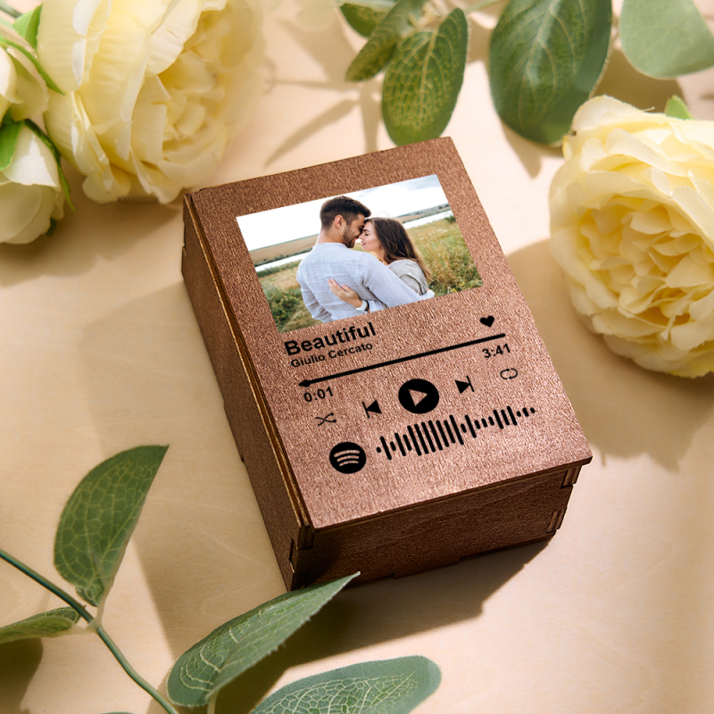 Customized Wooden Photo Box Spotify "Love Memories" Wedding Anniversary Album Gift for Couple