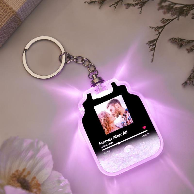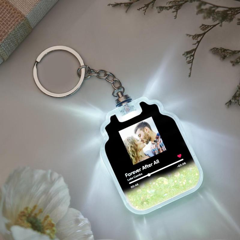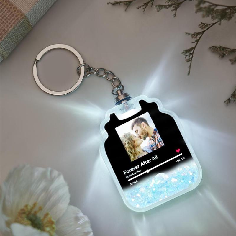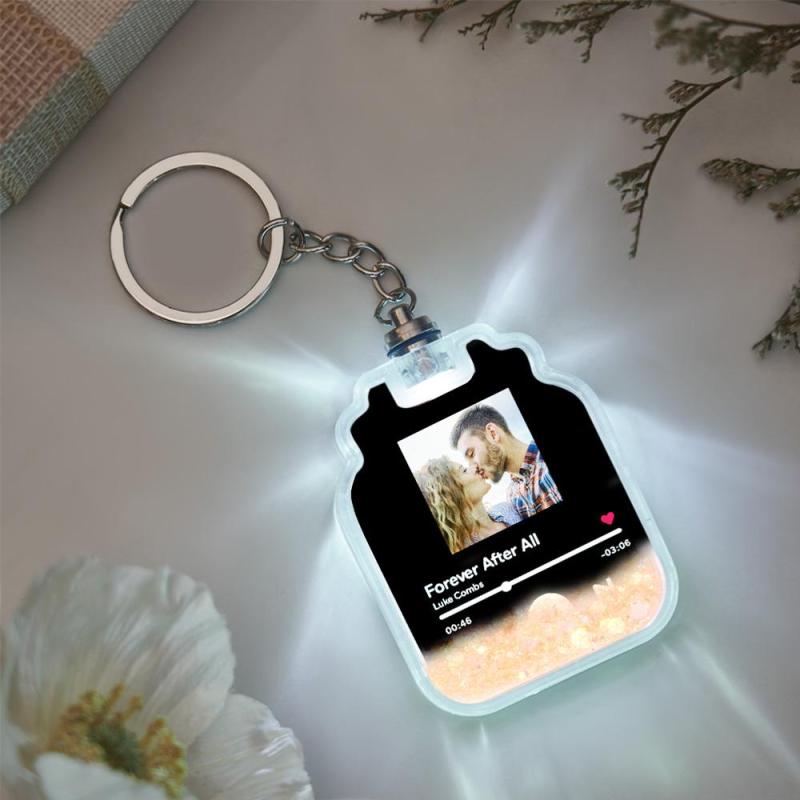 Custom Photo Scannable Spotify Code Illuminated Quicksand Drift Bottle Shape Keychain