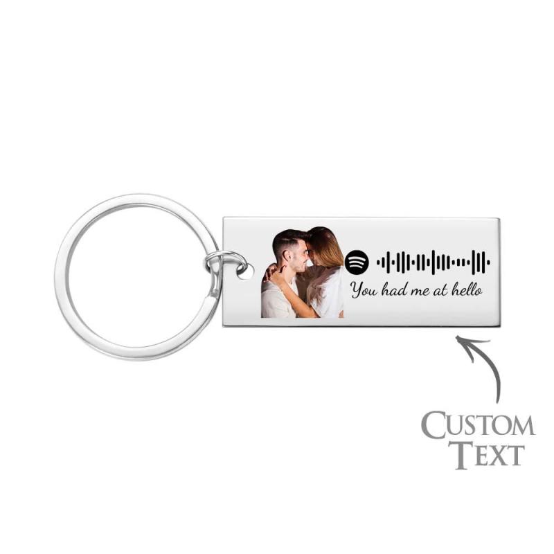 Custom Photo Engraved Spotify Music Keychain Stainless Steel Scannable Code Best Gifts For Couples