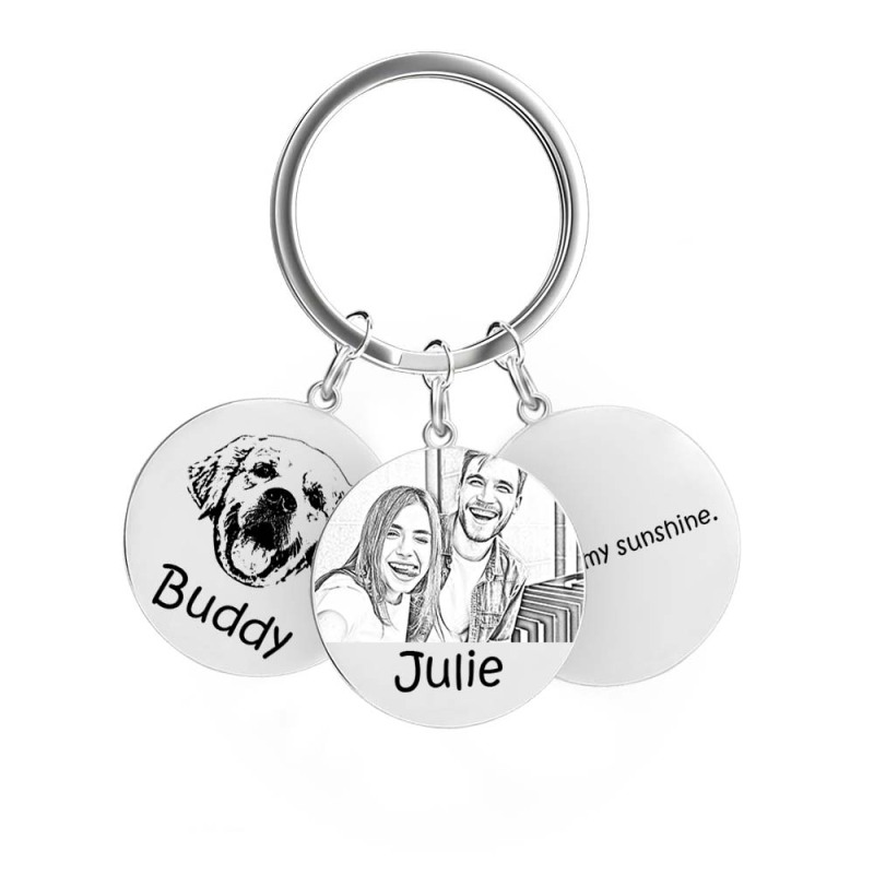Custom Photo Keychain Personalized Keychain with Picture Engraved Text Keyring for Family