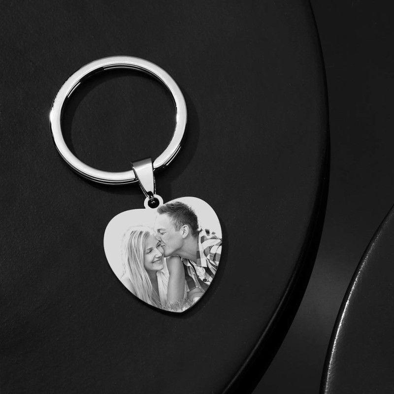 Custom Photo Keyring Stainless Steel - Heart Pendant