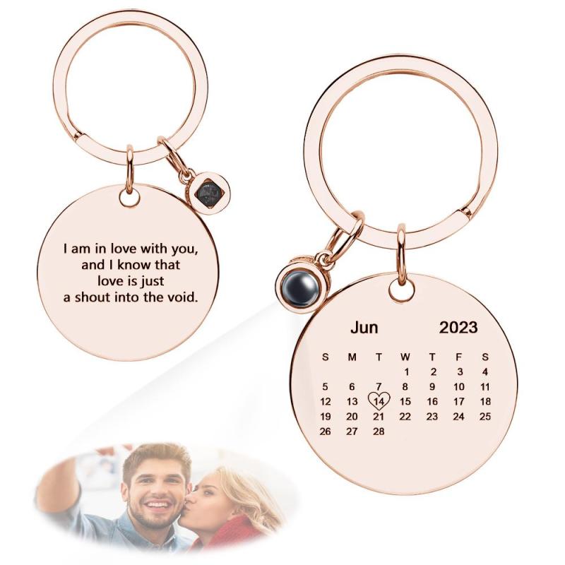 Custom Photo Projection Keychain Personalized Calendar with Text Key Ring