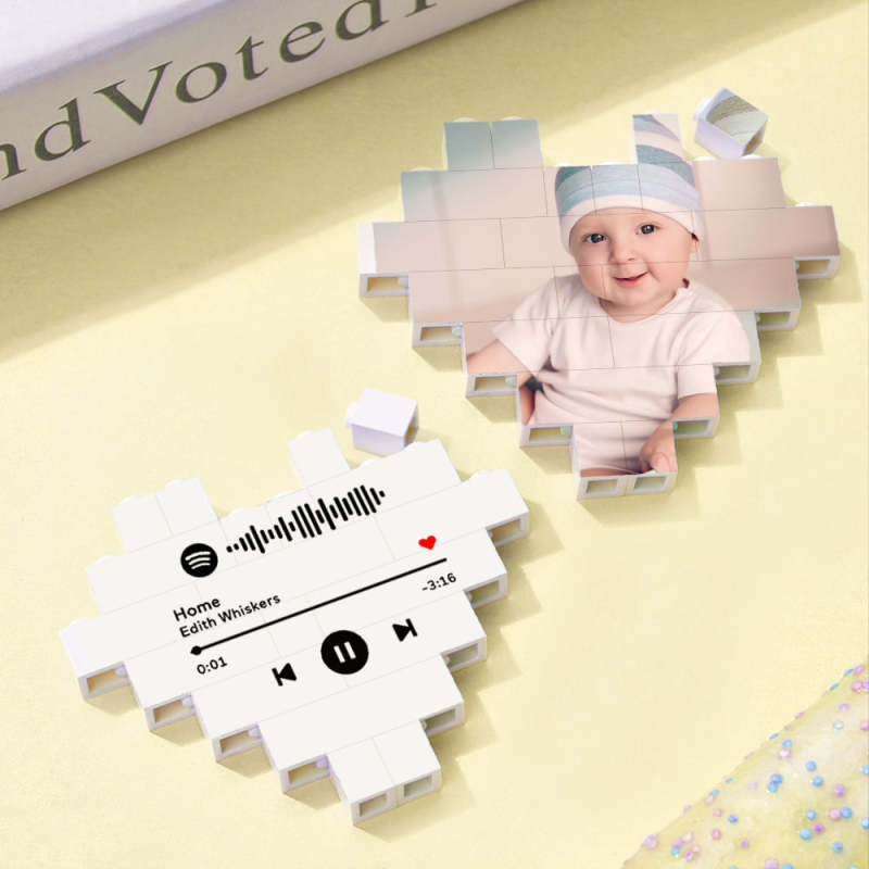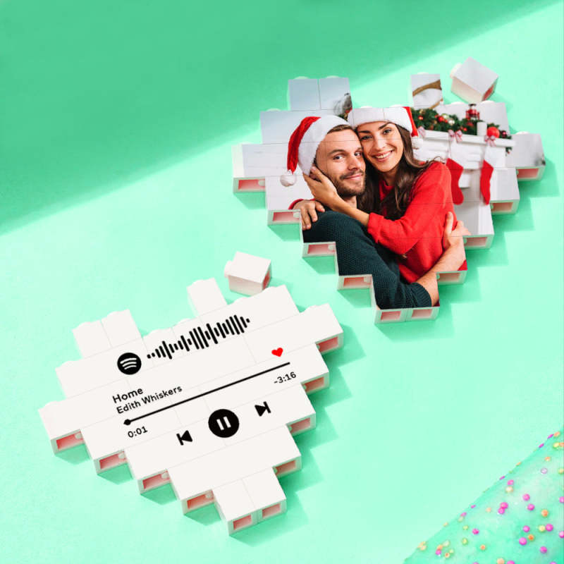 Custom Spotify Code Building Brick Personalized Photo Block Heart Shape best gifts for lover