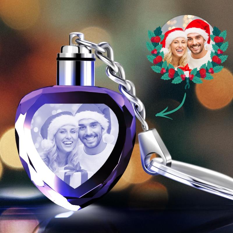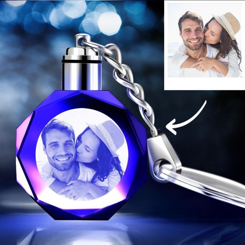 Christmas Gifts Custom Crystal Couple Photo Round Key Chain Gifts for Love
