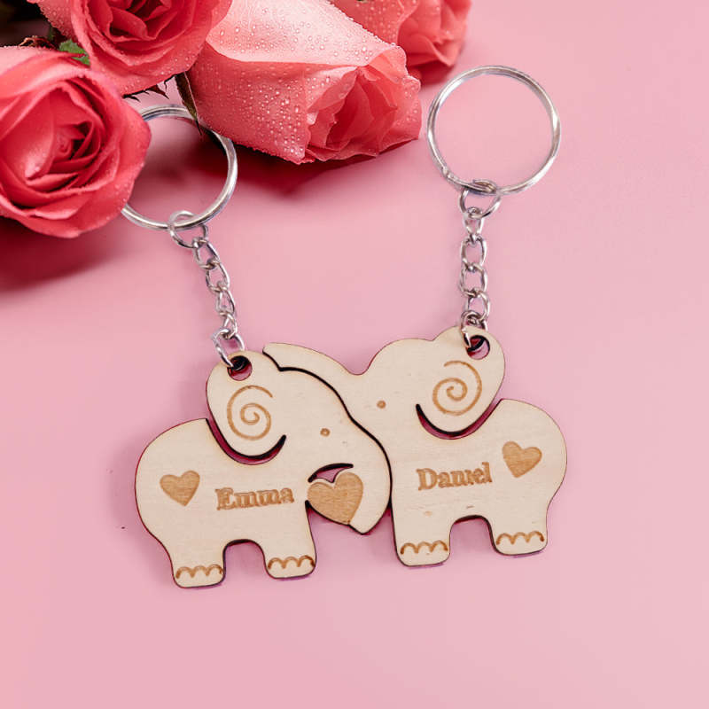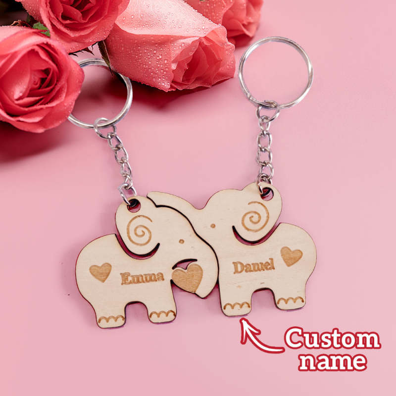 Personalized Couple Matching Keychain Custom Matching Elephants Keychain Valentine's Day Gifts for Lover