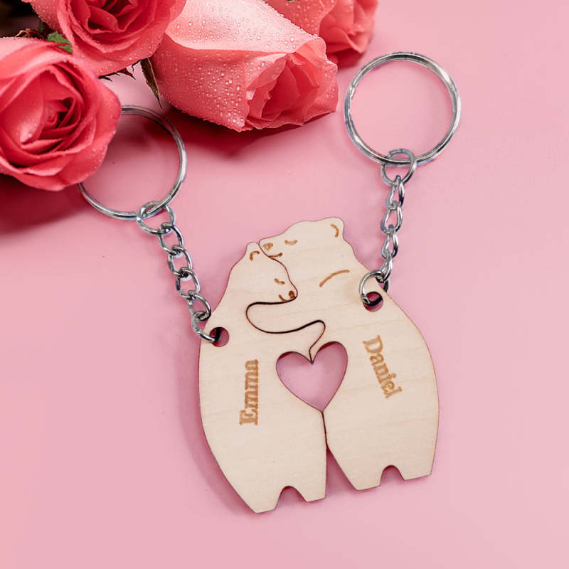 Personalized Couple Matching Keychain Custom Matching Hug Bears Keychain Valentine's Day Gifts for Lover