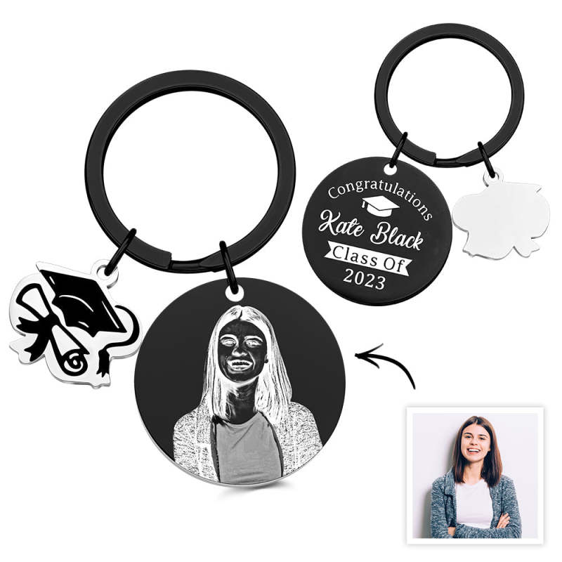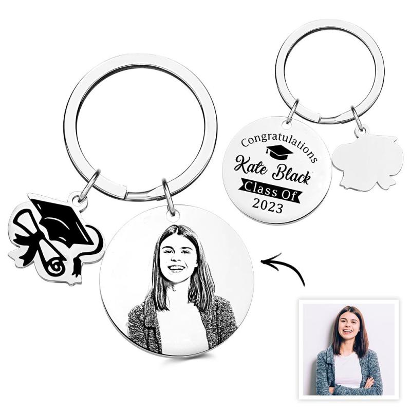Personalized Graduation Photo Keychain Custom Engraved Commemorative Gifts for Him