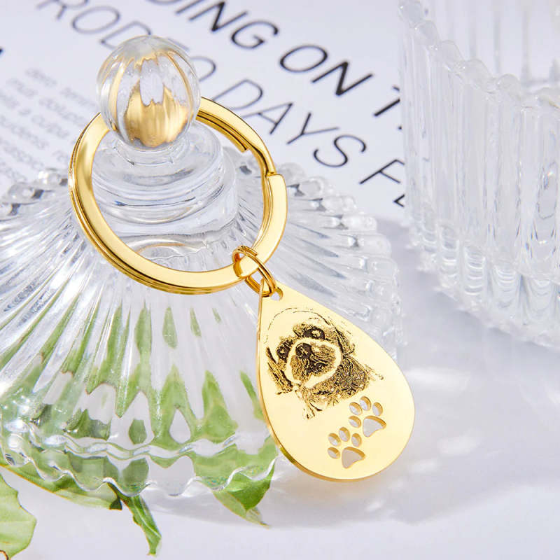 Personalised Pet Tag Photo Keychain Custom Dog Paw Pendant Memorable Gifts