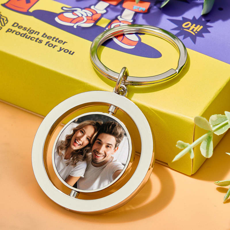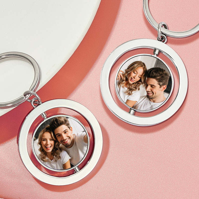 Personalized Photo Keychain Custom Turnable Double Sides Keychains Gifts for Lover