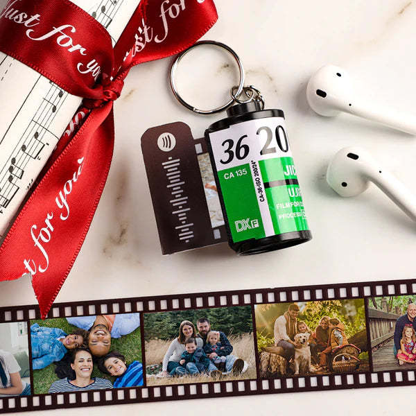 Personalized Spotify Code Camera Roll Keychain Personalized Multiphoto keychain for Family 5-20 Pictures Green Shell