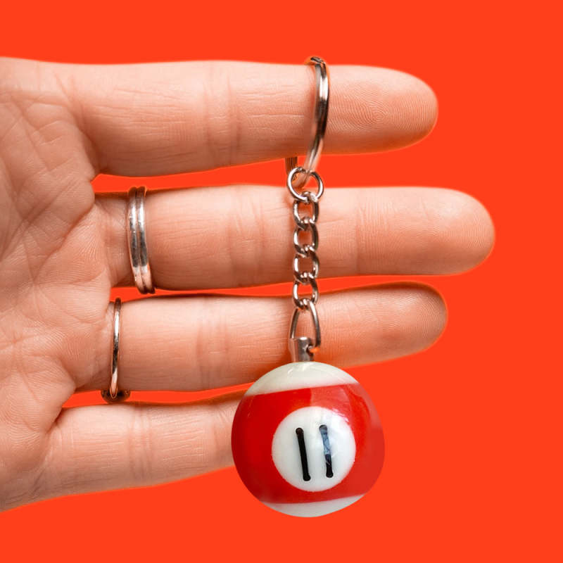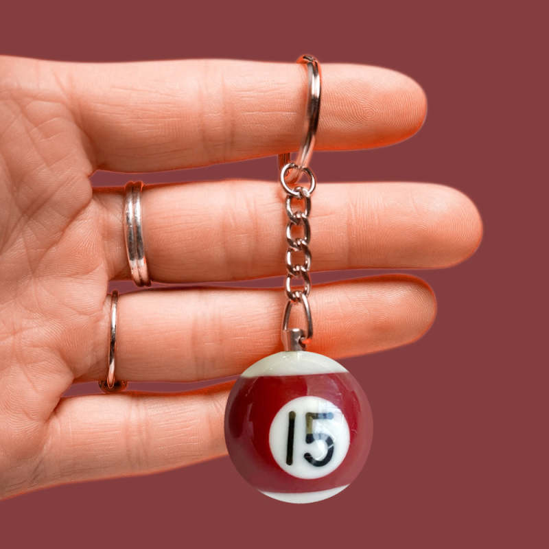 Pool Ball 8 Keychain, Miniature Real Billards Ball Keyring, Cute Fun Vintage Gifts for Him Her