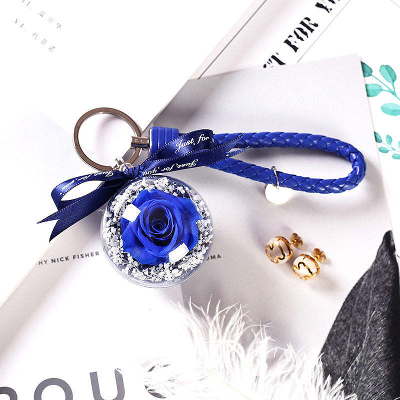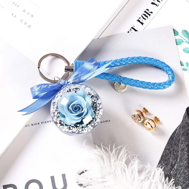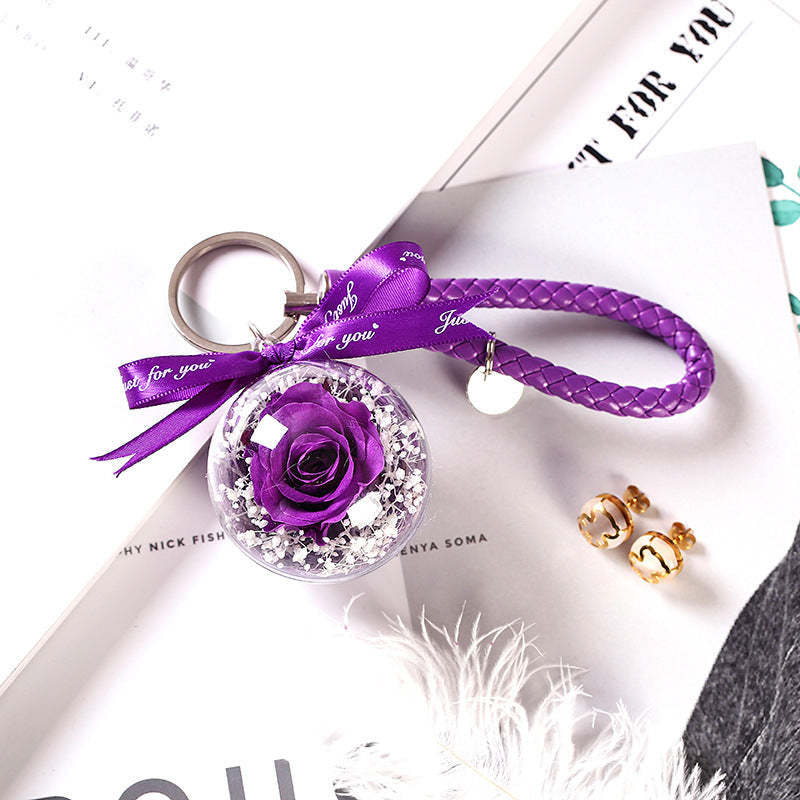 Preserved Rose Keychain Leather Keyring Infinity Roses Bag Hang Deco - Red Rose