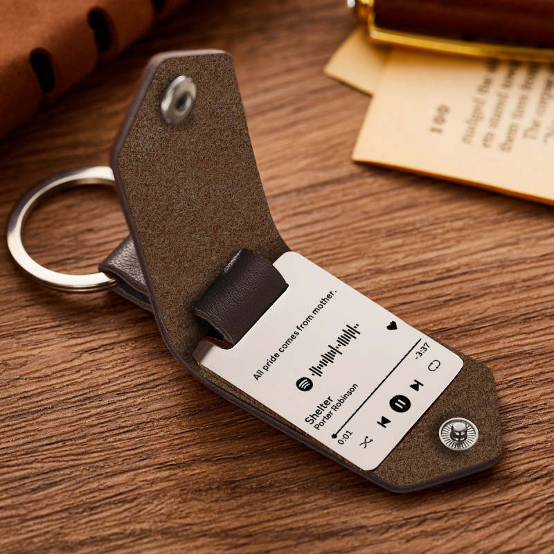Scannable Spotify Code Keychain Custom Engraved Music Song Keychains Leather Gifts for Mom