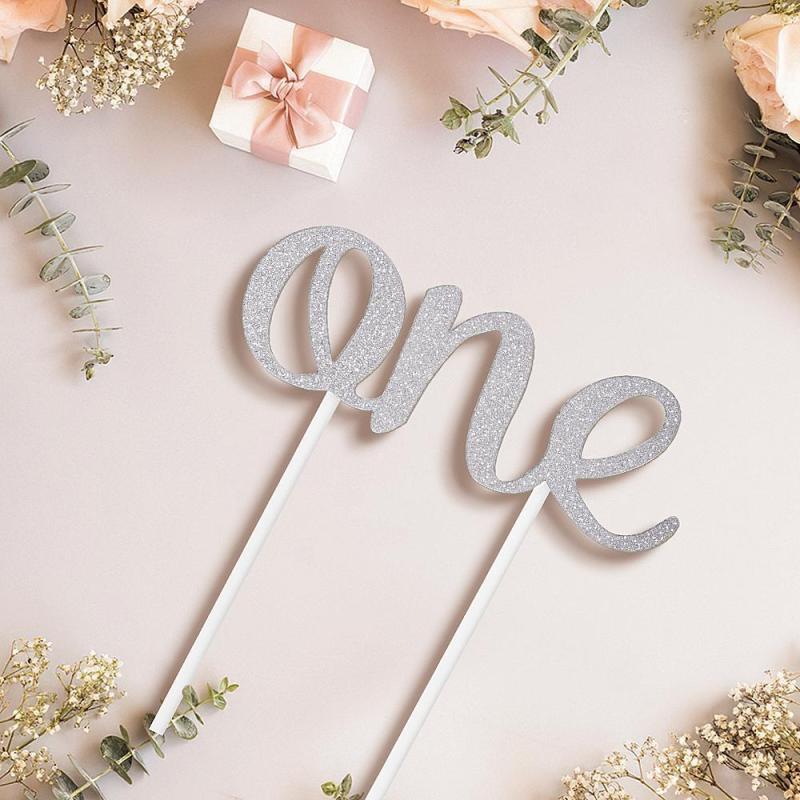 Silver One Cake Topper - Glitter - First Birthday First Birthday 1st Birthday First Year