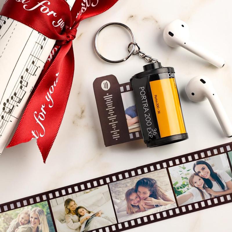 Personalized Spotify Code Camera Roll Keychain Multiphoto for Mom 5-20 Pictures Green Shell